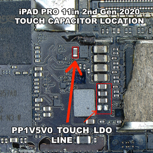 [[File:Ipad pro 2020 notouch.png|thumb|iPad Pro 11in 2nd Gen 2020 - PP1V50_TOUCH_LDO Capacitors]] | |||