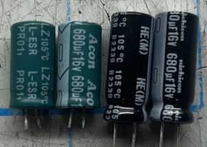 This repair involves replacing two low ESR 16v 680uF electrolytic capacitors.