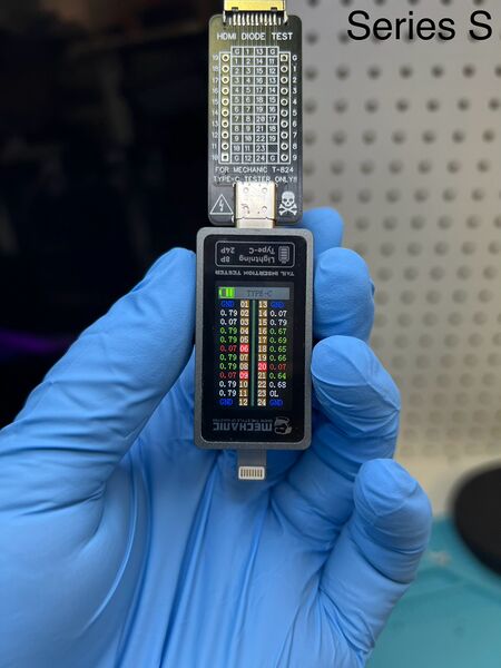 Xbox Series S HDMI Port Diode Mode Readings through Mechanic T-824 Tester