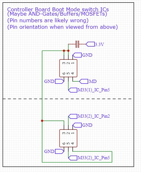 Schematic for the Mode-switch circuit to switch the MCU to programming mode - rev B Board