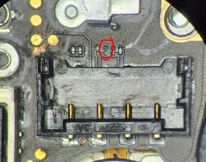 - Check for missing components near the battery connector. See Figure 1.