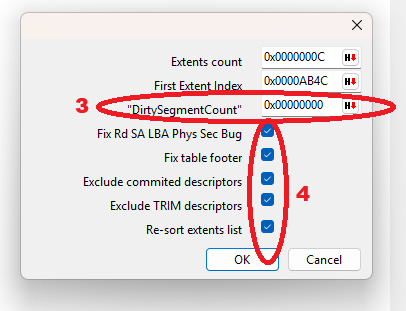 12. Here we need to fill the “DirtySegmentCount” with 0 and check all the option below that and click OK